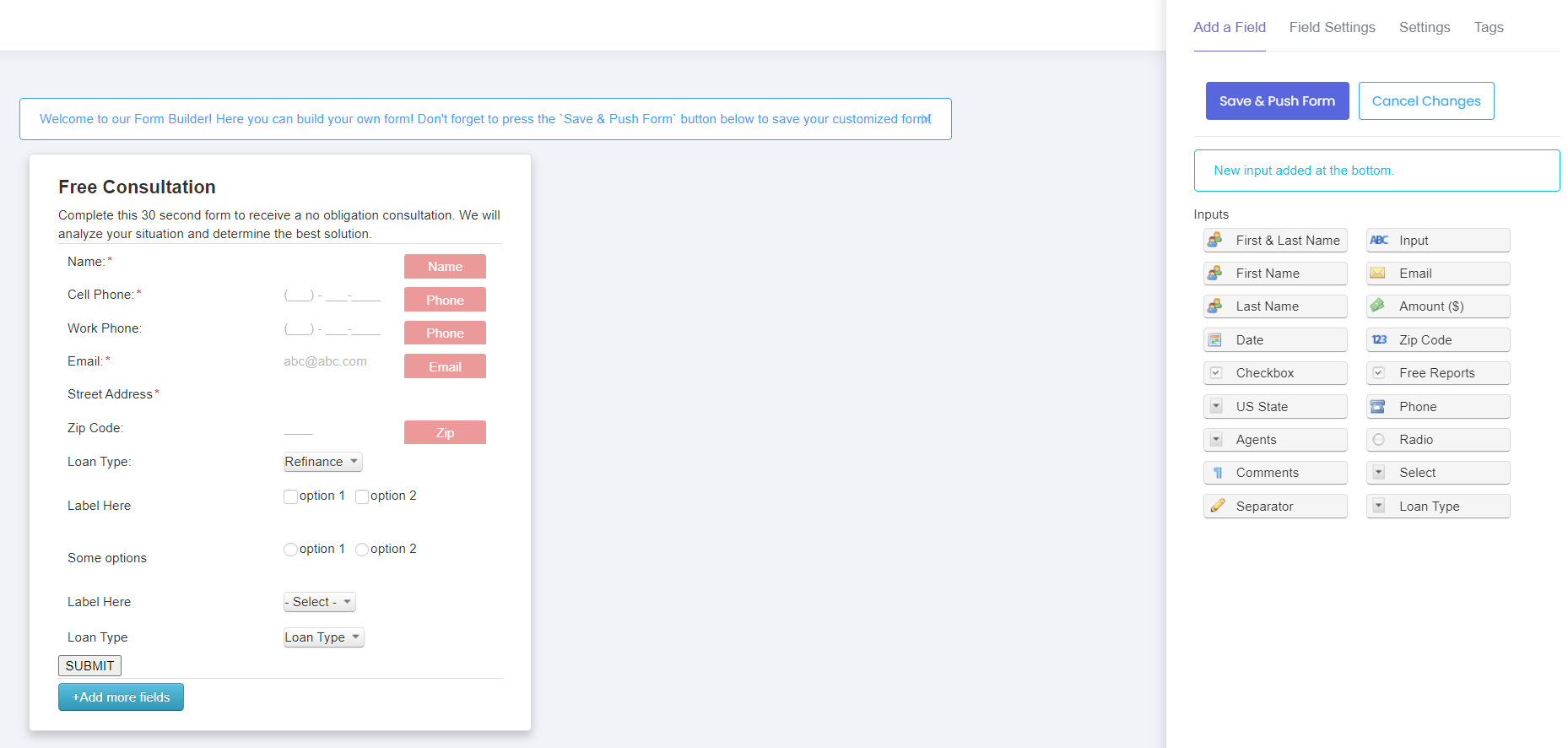 - Once done customizing the form, click on the "Save & Push Form" button at the upper right.
