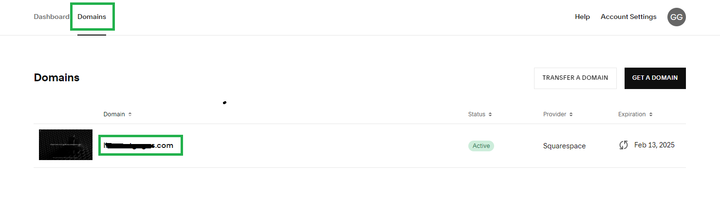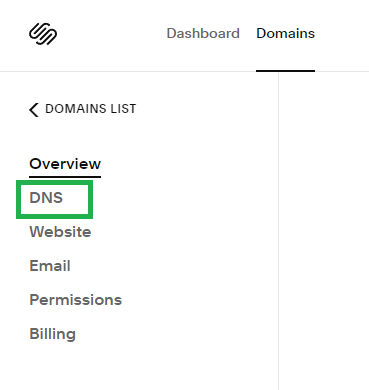 - Click on "Domains" at the top left, or click on this link: https://account.squarespace.com/domains, and click on your domain.