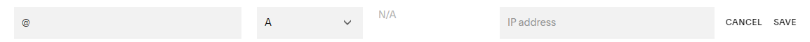 - Add an A record, name it @, set it to your IP address (see note at the top of this article), and click "Save".