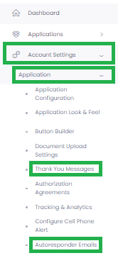 3. To Edit Thank you Messages (Screen seen after completing application) Click Thank You Messages