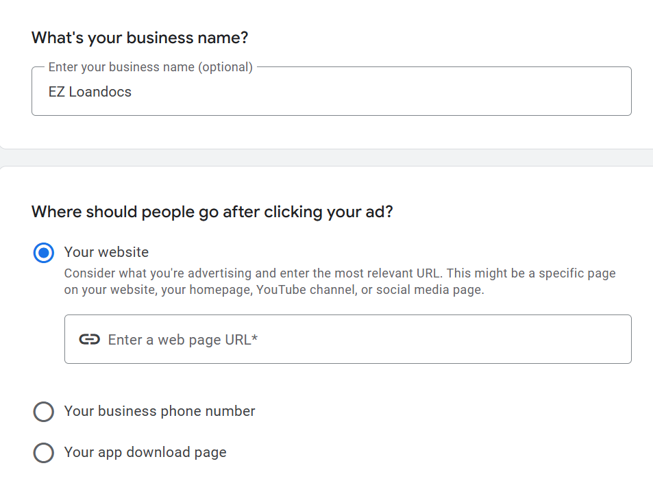 - Input the URL for your website. Your business name is optional but you can input that as well if it is not automatically detected. Click Next.