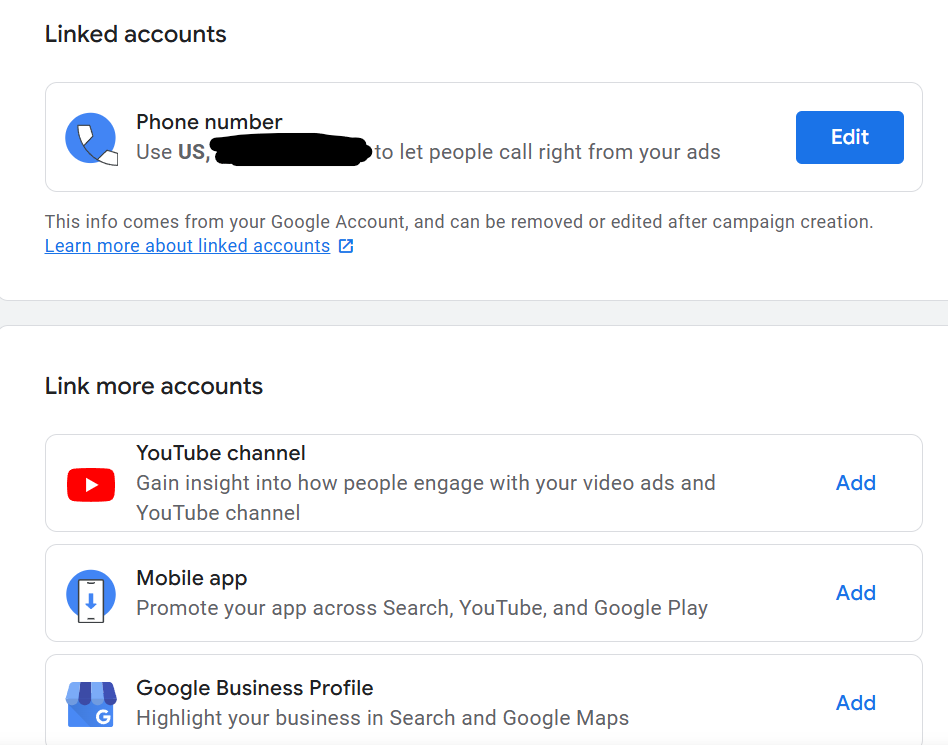 - Link your Google Business Profile if not automatically linked. Others are optional.