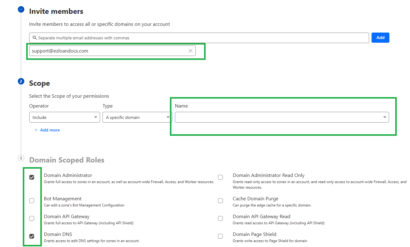 Add a Cloudflare User to Manage a Domain Technical Support Team Updated September 23, 2025 20:09 Follow Log into your Cloudflare account On the home screen, click the "+ Add" button at the top right Add support@ezloandocs.com as Administrator or Domain Administrator. Make sure to select the domain that you want to use for the website. Related articles Adding Access To A User - GoDaddy Network Solutions Name Server Instructions Squarespace A Record Setup Instructions Add A Contributor In Squarespace Adding Loan Officer Is Admin Comments 0 comments Please sign in to leave a comment.