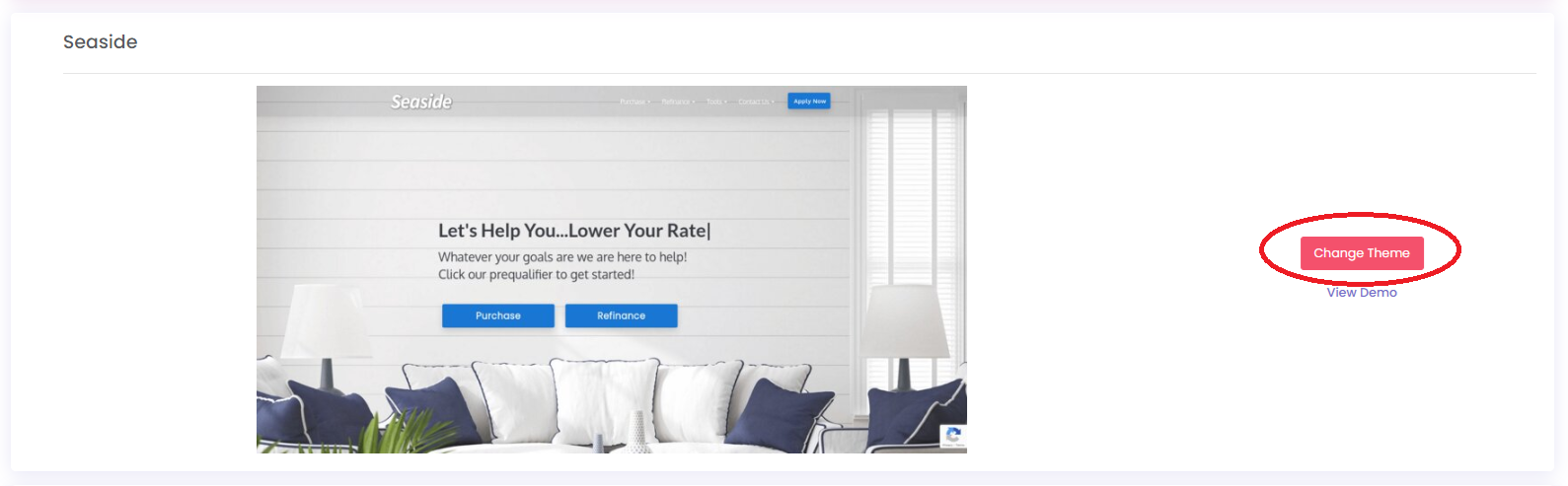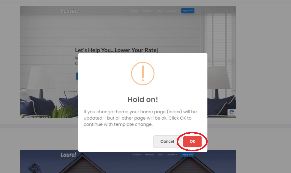 Step 3: Browse through our prebuilt themes/templates. Click the "Change Theme" button of your preferred theme/template.